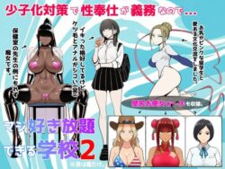 少子化対策で性奉仕が義務なので、マジ好き放題できる学校2※男は俺だけ【ロバいとど】 ロバいとどは過激でハードな同人作品を得意とするサークルです。今回の作品は少子化対策として性奉仕が義務となった学校を舞台にしています。男子は主人公1人という設定で、自由に好き放題できる環境の中で繰り広げられるストーリーに期待が高まります。スポーツ選手や保健医、制服といった要素も盛り込まれており、ロバいとどならではの濃厚な描写に酔いしれることができます。 同人