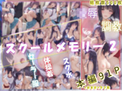 スクールメモリー2 凌●の果てから調教へ【あいこんたくと】 スクールメモリー2 凌●の果てから調教へは、学園ものの世界を舞台に繰り広げられる学園ものの物語。メス堕ちや執着攻めを描く作品で、セーラー服や体操着・ブルマを纏ったキャラクターが登場する。凌●の果てから調教へと題されたこの作品は、あいこんたくとサークルから発表された。 同人